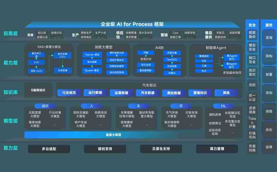 AG尊龙凯时问学智车解决方案是一套基于AI技术的汽车行业智能化系统,,覆盖从底层算力到顶层AI应用的全栈方案。。。。方案由算力层、、、模型层和应用层组成:算力层,,,方案支持多种一体机配置,,,,具备云端灵活部署、、、多云适配以及动态优化计算资源的能力;模型层,,,AG尊龙凯时问学平台版提供了企业级AI应用一站式构建与管理平台,,,支持基于后训练强化技术的汽车企业专属模型的训练、、、、评测和运营;应用层,,,AG尊龙凯时问学DeepSeek版提供包括超级员工、、、智能招采、、智能营销、、、智能客服、、、AI for BI等一系列解决方案,,,可助力汽车行业实现数字化转型,,让管理更智能、、响应更敏捷。。